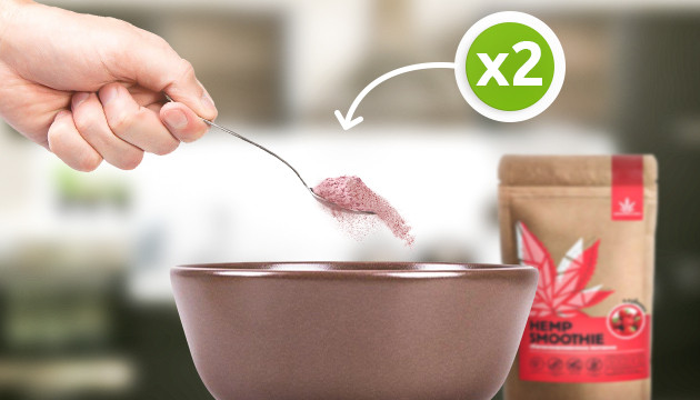 2 чайные ложки готового конопляного смузи-порошка (отлично подойдет клубничный Hemp Smoothie);
