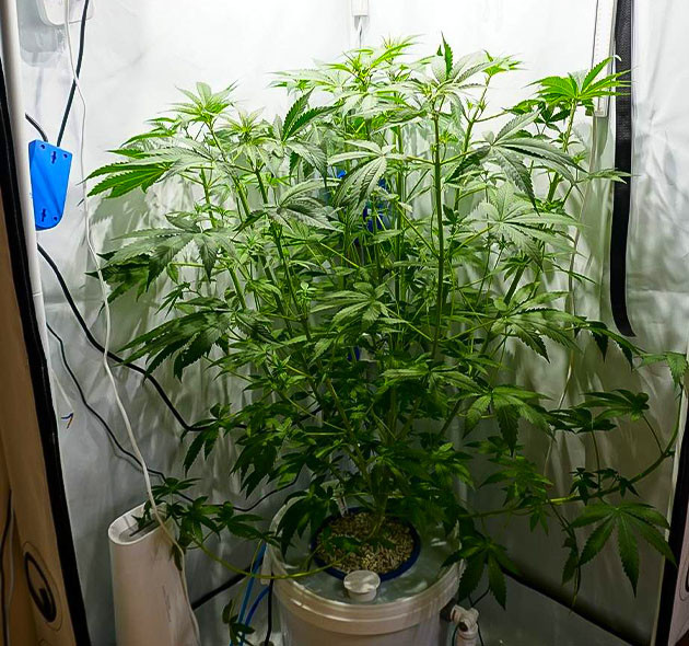 Кустик активно растет. Крона стала заметно гуще, новые стебли быстро сформировались, вытянулись и заняли свое место под солнцем. От горшка до макушек – 52 сантиметра. Условия в палатке стали лучше, температура опустилась до 28 °C, температура раствора такая же. Влажность – 65 %. Расстояние до ламп около 90 сантиметров. В палатке появился запах, не резкий, но весьма ощутимый. Раствор не менял, не добавлял, его показатели с датчиков остаются такими же: ppm 650, pH 5,8.