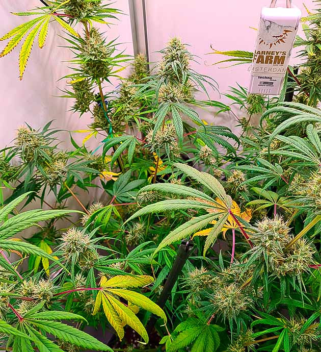Кусты резко увеличились в размерах и стали походить на миниатюрные деревца. Уже чувствуется легкий травянистый аромат, который заставляет меня предвкушать дегустацию. Пока шишки не готовы, думаю, им потребуется еще две-три недели. Удобрения прекрасно справляются со своей задачей, признаков отравления я не наблюдаю, поэтому я не буду менять их вплоть до конца жизненного цикла растений. Продолжаю периодически прибегать к дефолиации и жду харвеста.