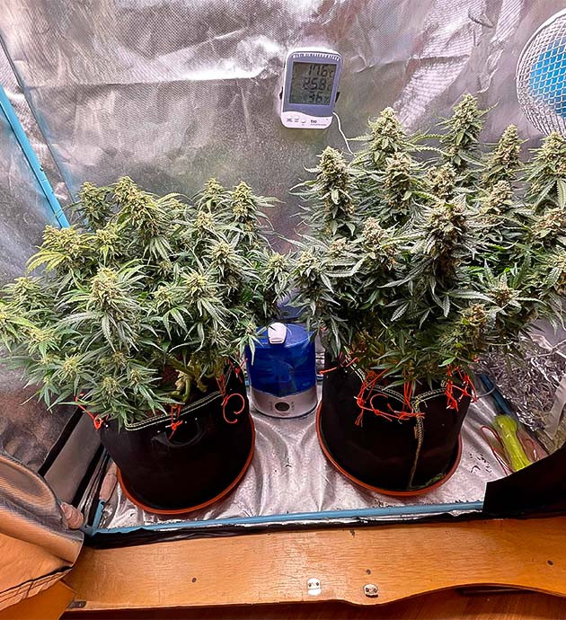 На 14-й неделе сильно ухудшилась погода, шли дожди и стоял туман. Из-за этого сильно поднялась влажность и на одной из кол появилась плесень. Хорошо, что я быстро её обнаружил и удалил. Понизил влажность в боксе до минимума, которого смог добиться, до 40 %. Похоже, этим я спас весь свой урожай, так как дождливая погода продолжалась и влажность зашкаливала. В конце недели начал готовиться к харвесту, то есть промывать растихи.