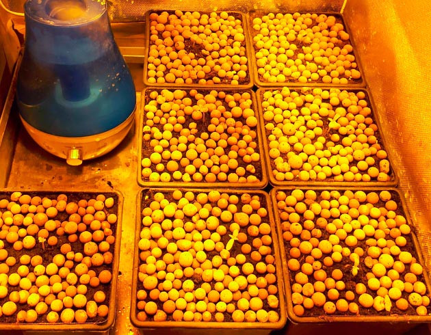 В бокс помещается 9 таких горшков. Семь оставляют место для увлажнителя, над ним висит вентилятор. Условия микроклимата в боксе стараюсь держать стабильными, проверяю каждый день: