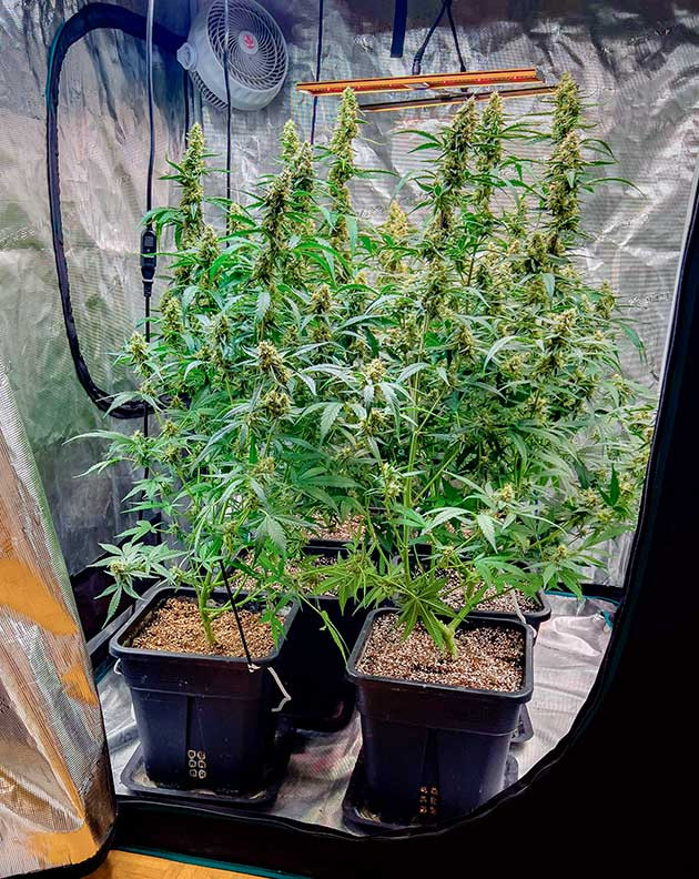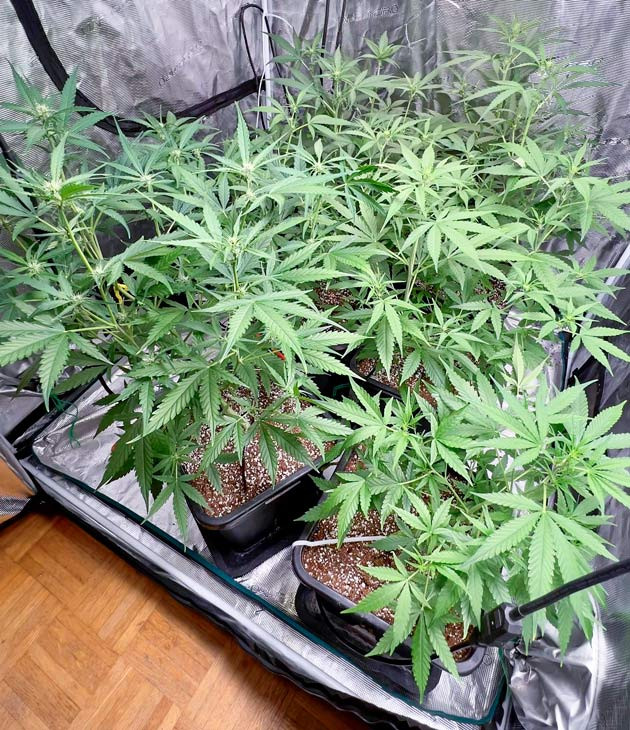 За две недели кусты просто взорвались. Сейчас их высота составляет 75 сантиметров, а соцветий становится все больше и больше. Я уже чувствую приятный фруктовый аромат и с нетерпением жду харвеста. По уходу я лишь добавил в перечень удобрений 2 мл/л CANNA BOOST Accelerator, в остальном все, как обычно.