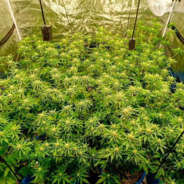 Все идет точно так, как я запланировал. Растения за последние дни хорошенько вытянулись, обросли листьями и уже практически достали до высоты сетки. И это означает, что наступило время второй радикальной обрезки. Работаю в медитативном состоянии и никогда не жалею кустики во время дефолиации. Проверено не один раз, что здоровое и довольное жизнью растение может спокойно восстановиться, даже если ему вообще оставить всего парочку небольших листочков. Так что безжалостно обрезаю те же 15 кустов, оставив нетронутым нашего аутсайдера. После хорошенько поливаю горшки питательным раствором и закрываю палатку, чтобы они приходили в себя в спокойной уютной атмосфере, ведь совсем скоро они будут переведены на цветение.