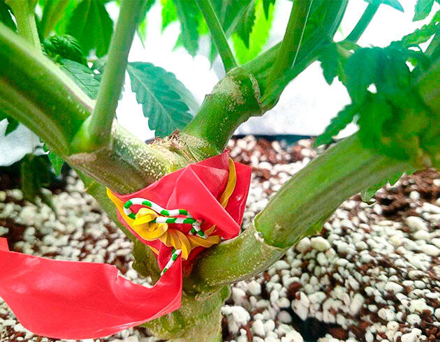 На этой неделе были сделаны топпинг и небольшая дефолиация для открытия соцветий. Вместе с тем дал старт постоянной и постепенной растяжке LST. Скоро растение оправится от стресса, немного подрастет, и его ждет пересадка в 16-литровый воздушный горшок. Сейчас все так же поливаю раз в неделю, но концентрацию удобрений поднял до 2 мл/л, ppm 600.