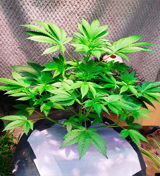 Отличная неделя! Больше никакой корневой гнили, поэтому кустик начал расти, достигнув высоты в 25 сантиметров. Мы немного отстаем от графика, но такое иногда случается.