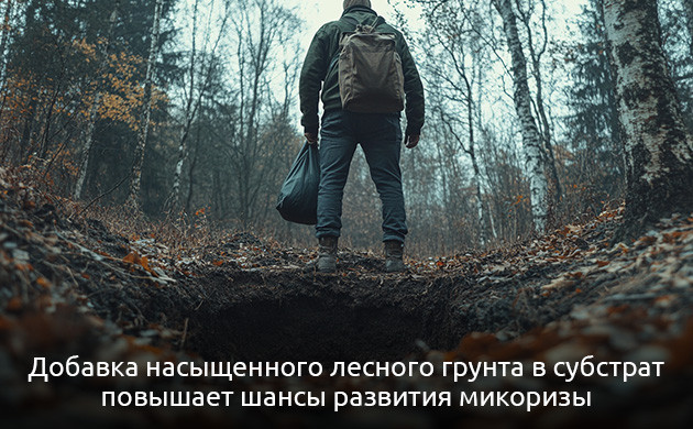 - при замешивании почвосмеси или компоста используется богатый питательными веществами грунт из лесной местности. Будет достаточно нескольких горстей такой почвы, добавленной в общий замес, чтобы значительно повысить шансы развития качественной микоризы;