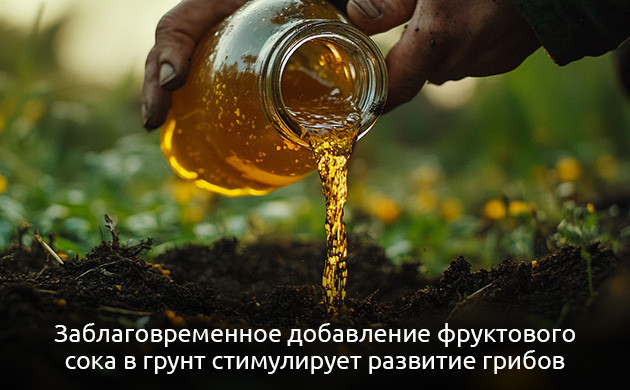 - в почву добавляется источник сахаров, например фруктовый сок или кленовый сироп. Они выступают источником питания для развития грибов. При этом важно обеспечить нормальную аэрацию грунта, чтобы препятствовать развитию нежелательной патогенной флоры;
