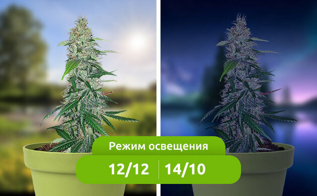 При культивации конопли в закрытом грунте гровер волен сам выбирать режим освещения. Если фотопериодные сорта более восприимчивы и требовательны к продолжительности светлого и темного времени суток, то относительно освещения автоцветов всегда не утихают споры. Одни говорят, что растения прекрасно чувствуют себя при круглосуточной работе ламп, другие же, наоборот, утверждают, что растениям нужно как минимум 4-6 часов отдыха при выключенном освещении.