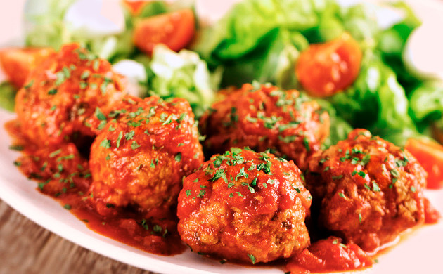 Шарики слегка обжариваются на сковороде в подготовленном масле до золотистого цвета, после чего заливаются томатным соусом и тушатся так под крышкой 10 минут на слабом огне. Готовое блюдо вкусно как само по себе, так и с гарниром, рисом или лапшой.