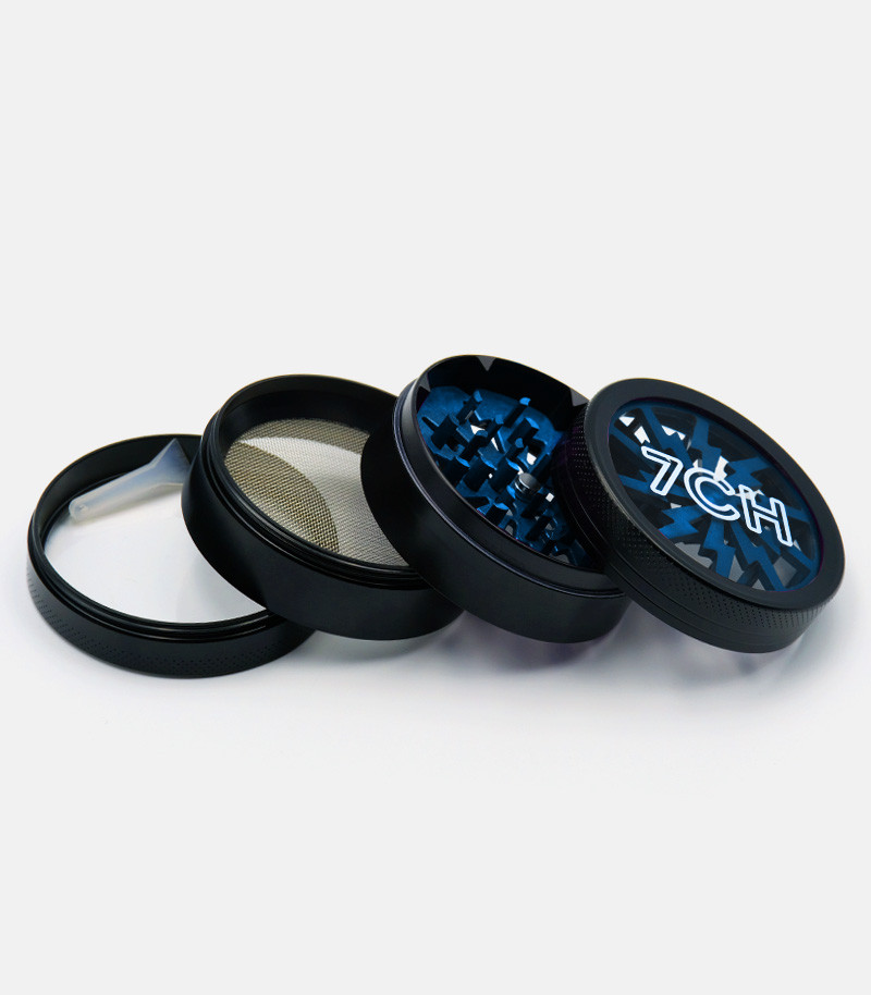 Измельчение сушеных материалов еще никогда не было таким простым. Гриндер из цинкового сплава – это надежный девайс, который прослужит гроверу долго. Он состоит из трех камер. Отличительная особенность изделия заключается в прозрачной верхней крышке. За счет этого можно наблюдать за процессом измельчения. Ножи ромбовидные и очень острые, что позволяет накрошить сушеные травы за несколько движений. Крышка крепится к отсеку с лезвиями при помощи магнита. Таким образом, даже если гриндер перевернуть, он не раскроется. Следующие две камеры предназначены для хранения измельченного продукта. Одна большая и достаточно вместительная, она имеет диаметр 63 мм. Нижняя камера используется для сбора пыльцы. Для этого отсек оснащен металлической сеточкой, через которую просеивается самая мелкая фракция. У гриндера оригинальный дизайн во многом благодаря прозрачной верхней крышке. Доступен для заказа в разных цветах.