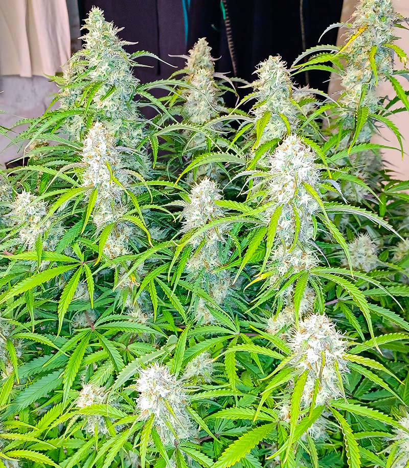 Этот сативный автоцвет проходит жизненный путь за 56-70 дней. Каннабис обладает всеми необходимыми показателями для легкого грова: крепким здоровьем, простотой в уходе и хорошим урожаем. Производительность в помещении доходит до 550 грамм с квадратного метра, а в ауте – до 250 г/куст.