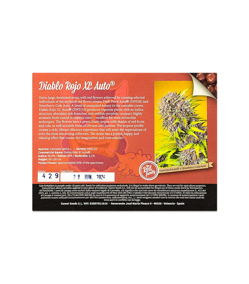 Семена сорта Diablo Rojo XL Auto fem (Sweet Seeds) Испания, Феминизированные, Автоцветущие, ТГК-16 - 23