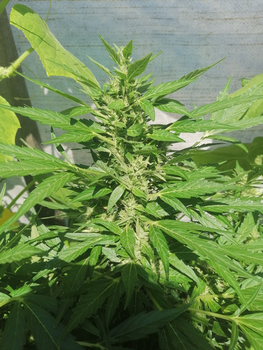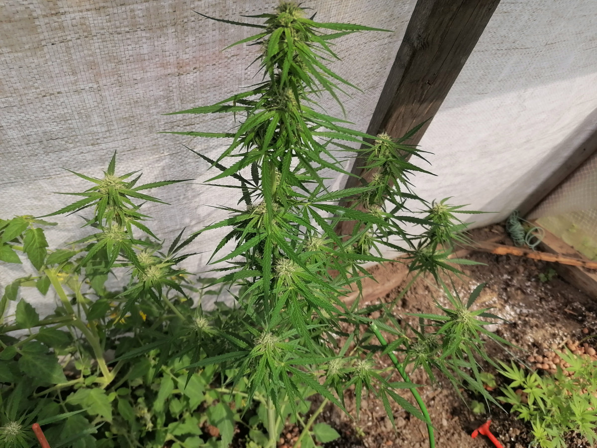 - Общие впечатленияРастиха выжила при 2-х недельном отсутствии солнца, холоде (+7°С), и вот наконец зацвела, на фото 56 дней (неделя цвета), рост 60 см. Впереди ещё 40-50 дней цвета, надеюсь вымахает ещё) Пожелайте удачи, братья раста и гроверы)