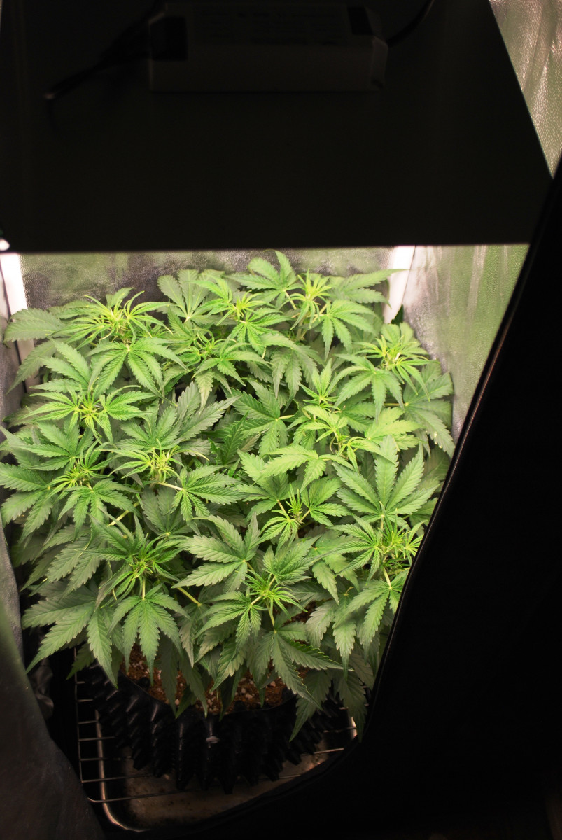 Первый гров..! Купил 3 семени. Первое, увы, не проросло за 5 дней(( ... Зато второе, уже на 3-ий день готово было прыгать в стакан с землей!) От каски до перехода 12/12 прошло 55 дней.. Дольше не стал, так как понял, что да как нужно делать с растишкой во время тренеровок, питания, полива и вообще роста...), да и бокс всего 40*40*140.. Свет вообще 60 W квантумборд на 281b pro))) Молчу уже про удобрения))) (использовал бона форту с добавлением сульфата магния.. на вегу - для декоративно-лиственных, а на цвете сейчас даю для кактусов и суккулентов! Сл. гров буду выращивать третье семя (надеюсь взойдет) и уже на кокосе с линейкой удобрений от наших Simplex) и наблюдать за разницей в росте))))) Просто хочется увидеть весь цикл растения и примерно понять нюансы, какие возможно... Хотел использовать LST и протягивать центральную колу по окружности горшка, но потом наткнулся на технику потока и пришлось скрестить эти техники))) топнул уже на 6ом междоузлие... В сл раз, буду также использовать технику потока)